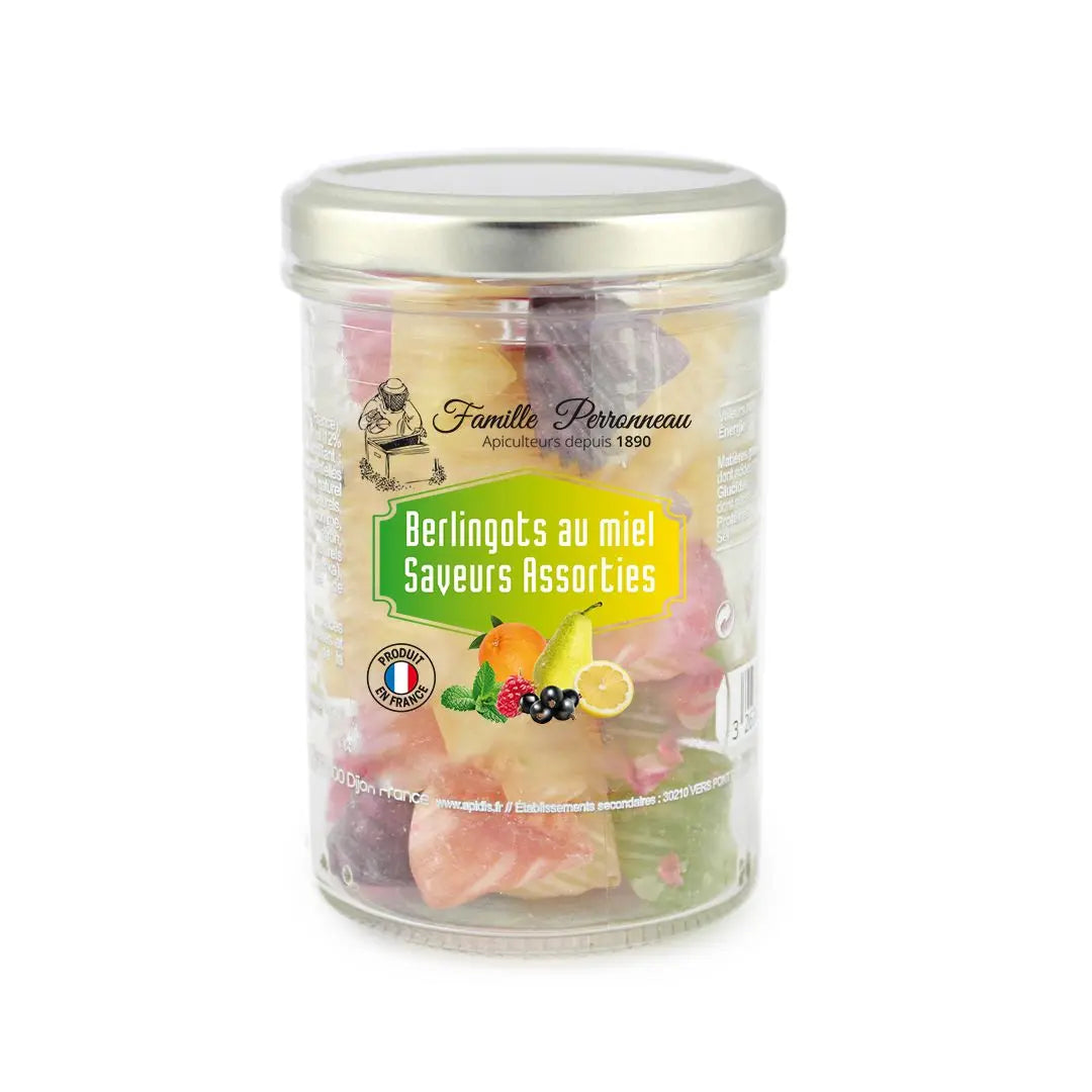 Dégustez notre assortiment de Berlingots au Miel français sans modération ! Dans leur petit bocal hermétique pratique, ils se gardent longtemps et se transportent partout.